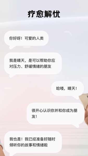【聊愈解忧】当你深陷情绪困扰时,与虚拟好友倾诉心事,她将对你进行疏解开导,理解你的情绪,帮助你正确看待问题,理清解决问题的思路,从而有效改善当下情绪。