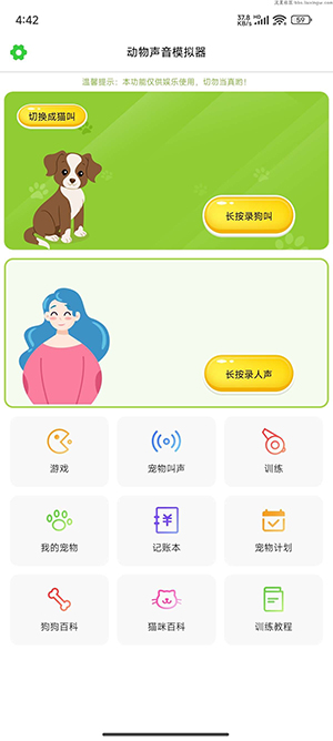 2.不同的猫叫声和狗叫声也都是可以模拟,发出不同声音