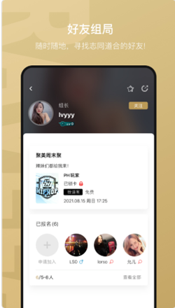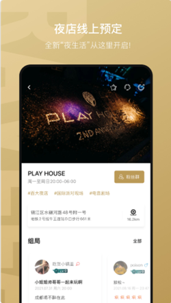 2.好友组局,觉得自己一个人去酒吧玩不尽兴?来这里,随时随地的寻找志同道合的好友,线上组局,享受聚会的乐趣。