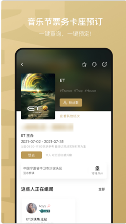 是一个一站式娱乐综合服务平台,票务预定功能、交友功能、卡座预定功能等各种实用性功能,对于喜欢出去玩的朋友们来说是非常实用的,我们以电音作为潮流文化的切入点,培育电音文化沃土,快来下载体验吧。