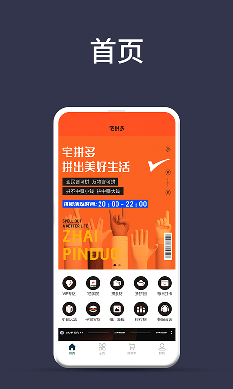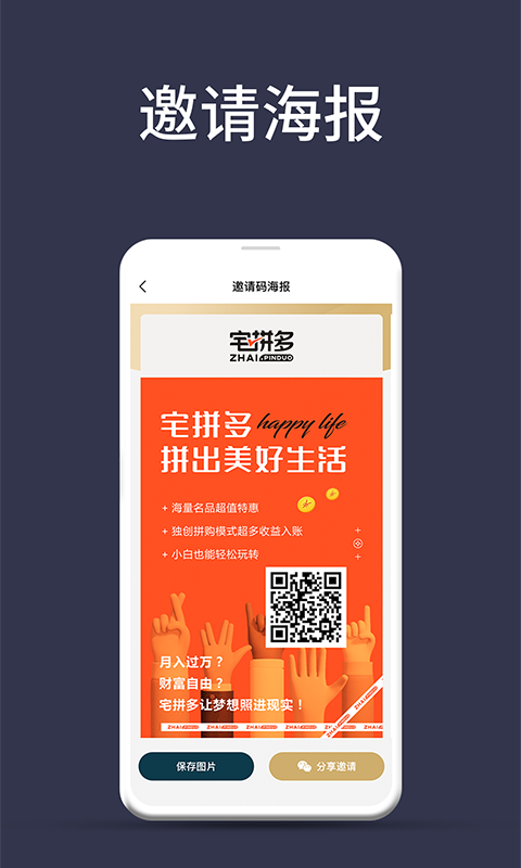 宅拼多app,用拼团的方式购物,购物更节省,购物更开心!