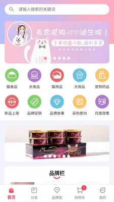 有恩宠购app是一款非常优质的宠物用品牌购买软件。平台中拥有非常多的宠物商品,各种宠物商品在这里都可以购买得到,这里有非常全面的优质的常务资源,无论是猫粮还是狗粮,或者是猫砂或者是猫猫狗狗的衣服,广大用户们在这里都可以购买,更有超多的福利可以在平台上进行选择,更多精彩的优惠卷都可以在这里使用,让你的宠物更加快乐,让你养宠物的过程更加轻松,有需要的用户赶紧下载软件试试吧!