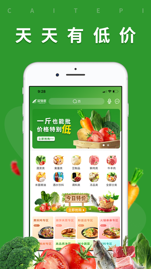 菜特批商城app是一款非常优质的购物平台。“人如其名”,软件的主要用途就是可以购买各种各样的菜品,用户们可以购买到所有的果蔬商品,超级多水果蔬菜种类,还有特别全面的商品介绍,让广大用户足不出户就可以逛商城,购买各种精美的果蔬商品。平台不仅种类丰富,还精选优质的水果蔬菜来源,为广大用户做好质量把控和运输管理,大大提高了广大用户的优质购物体验,有需要的用户赶紧下载软件试试吧!