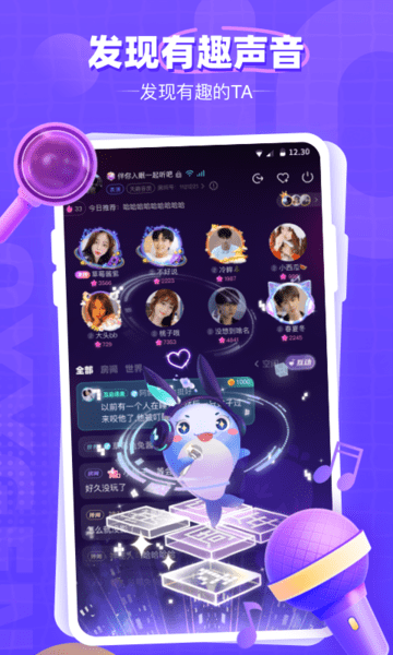 免费语音聊天交友神器。有大咖主播组队陪你开黑,电竞大神赛事直播和游戏语音播报,和密友斗图抢歌玩配音秀,和陌生人匿名聊天。