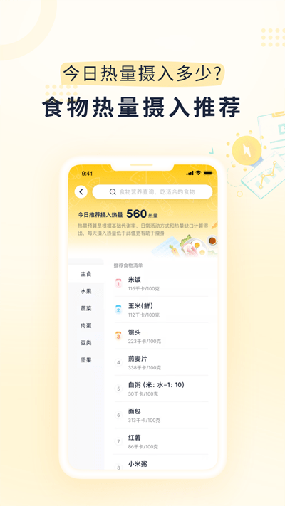 2、能量计算、各种食物的实时能量状况等,也支持用户在此进行智能计算。