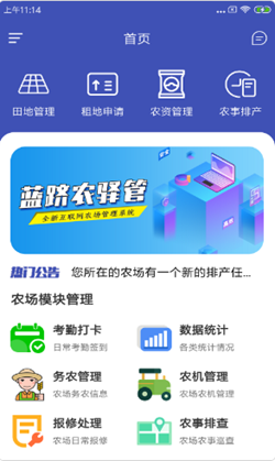 1.专业的农场模块管理,包括考勤打卡、数据统计、农务管理、农机管理、报修处理等多方面的模块,实时相应,非常便捷。