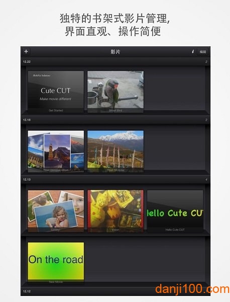-直观的书架式影片管理。
