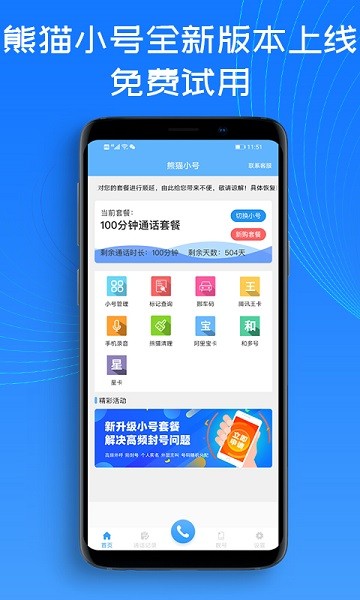 小号虚拟电话号码,免费熊猫隐私小号,保护通话隐私的电话小号app不换手机不换SIM卡,一键获得多个新手机号码,轻松实现一卡多号,为手机穿上隐私马甲!是打电话咨询、打车、租房、房产中介、电话销售、客服电话、来电业务回访的电话帮手!