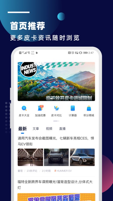 资讯推荐,每天还会推荐很多热门的资讯信息,浏览资讯都能方便你了解皮卡信息。