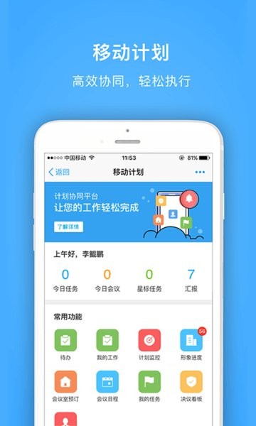 在这里,用户可以看到自己今日的任务、会议、星标任务和汇报数量内容;
