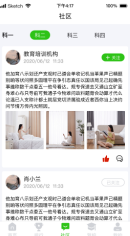 3.软件内部构建了非常完善的社区模式,让用户可以更加轻松的来进行所有分享关于科目考试的各种资讯以及不同的心得,互相交流如何更好的通过考试。