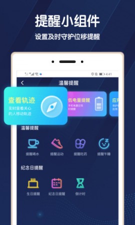 位移提醒功能,好友进入离开指定区域实时提醒,防止走失。