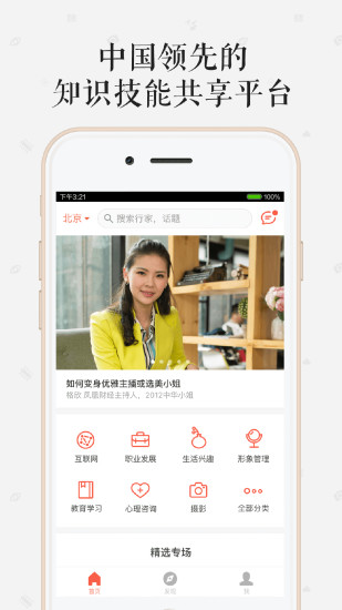 「在行」致力于用分享经济的理念让每个人的知识技能各尽所能。从现在开始,当你遇到任何领域的问题或是个性化的服务需求,都可以在这里,径直找到一个可以帮助你的人,答疑解惑,出谋划策,定制服务。