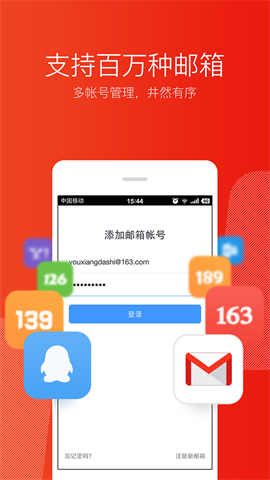 网易邮箱不仅支持网易自己的邮箱,还支持QQ邮箱,Gmail,139邮箱,新浪邮箱各类个人邮箱,所以它将是一个办公利器,让你工作事半功倍。