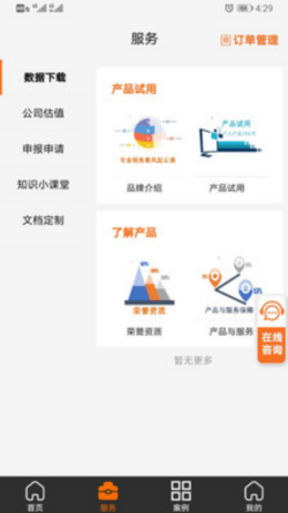 2.软件主打的四宝功能分别是数据下载、申请申报以及公司估值还有知识小课堂,所有的服务内容都是通过专业的机构模式设计而成,保证所有服务很完善。