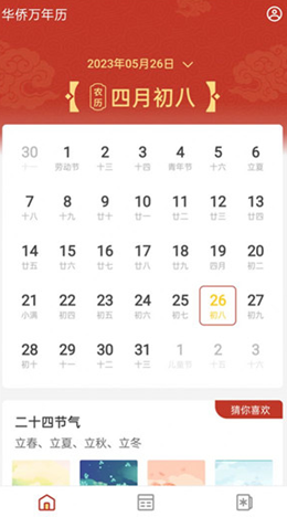 华侨万年历app,是一款十分实用的日历软件,提供农历、公历、节气、黄历、黄道吉日等多种日期信息。拥有很多实用功能,例如阴历阳历转换、日程提醒、节假日查询等,轻松满足用户对需要了解日期信息的使用。同时还有一些生活小工具,可以帮助用户更好地了解日期信息和生活小常识。