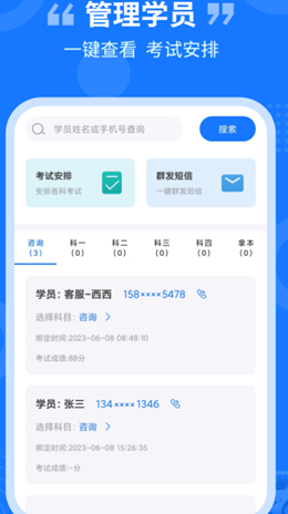 1、是一款面向驾校教练的移动应用程序,它提供了一系列功能和服务。