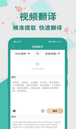 3、详细展示出相对应的翻译文本,同时提供单词及短语的英文发音,方便用户学习和锻炼发音。