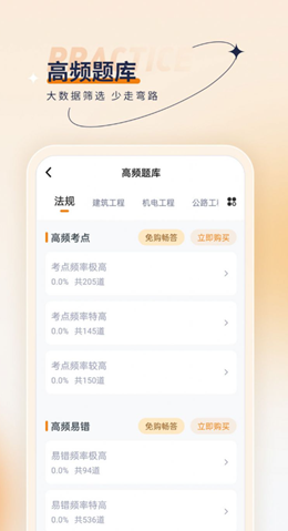 二级建造师优题汇app,是一款专为二级建造师考试学习者打造的学习平台,拥有丰富的考试学习资源,能够帮助用户轻松通过考试。包含考试题库、模拟考试、历年真题、考试资讯等多个模块,覆盖了二级建造师考试学习的方方面面。用户随时可以通过题库和模拟考试模块进行题目练习和考试模拟,从而检验自己的学习成果。