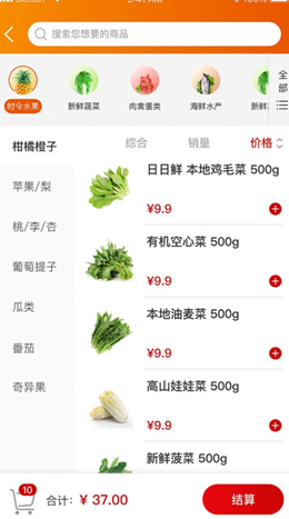 2、生鲜查询:汇集全国各地水果、蔬菜、肉类等生鲜类商品,通过关键字查询。