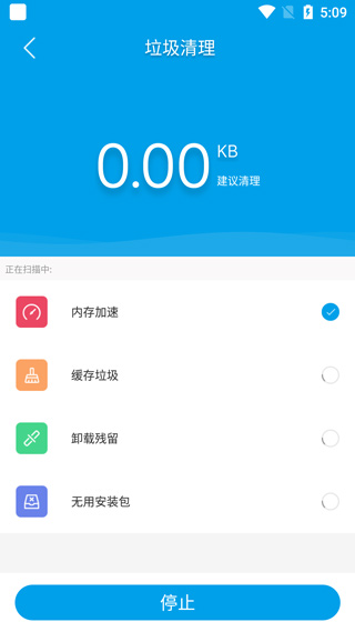 1、在本站下载软件打开,进入主界面后,点击垃圾清理对手机进行内存垃圾与结存垃圾扫描