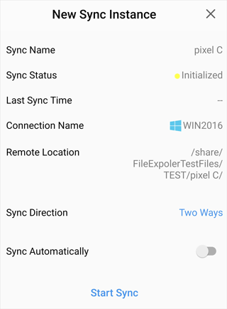 2、在一个同步实例的菜单中点击“开始同步”按钮。