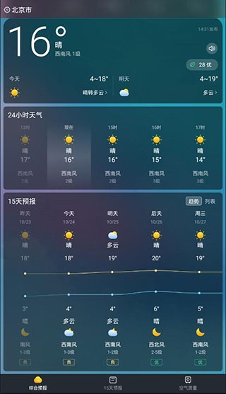 15天预报,可提前查看15天内的天气实时变化,掌握更多天气信息,提前规划出行。