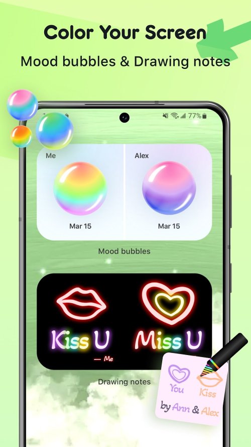 另一个有趣的小部件是朋友笔记。这将显示你在朋友的锁定屏幕上写的简短说明。你可以随时在应用程序中更改备注。