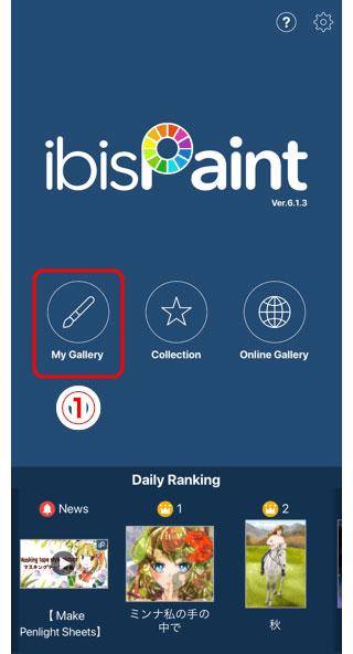 1、标题屏幕如下图。这次试着制作你自己的艺术品。首先, 点击①我的画廊。