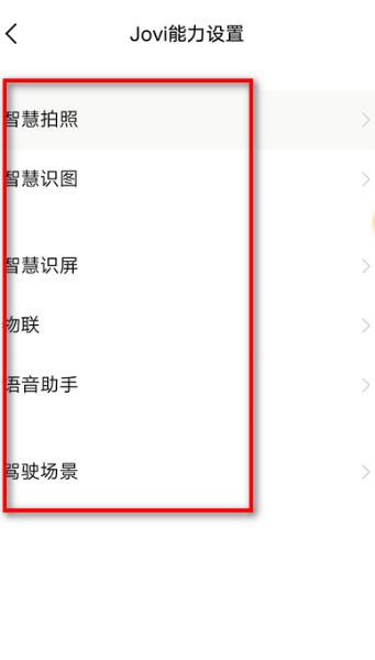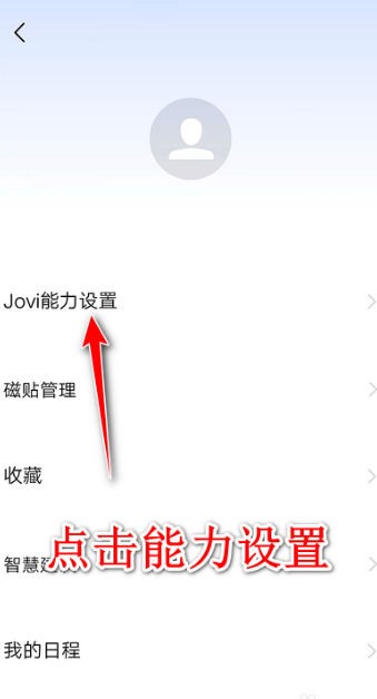 2、进入之后,可以看到jovi能力设置这一功能,点击进入,