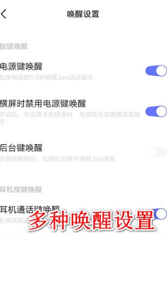 5、在jovi语音的唤醒设置上也存在多个方式,用户可以点击进入自由选择,以上就是Jovi语音助手app官方版使用方法了。