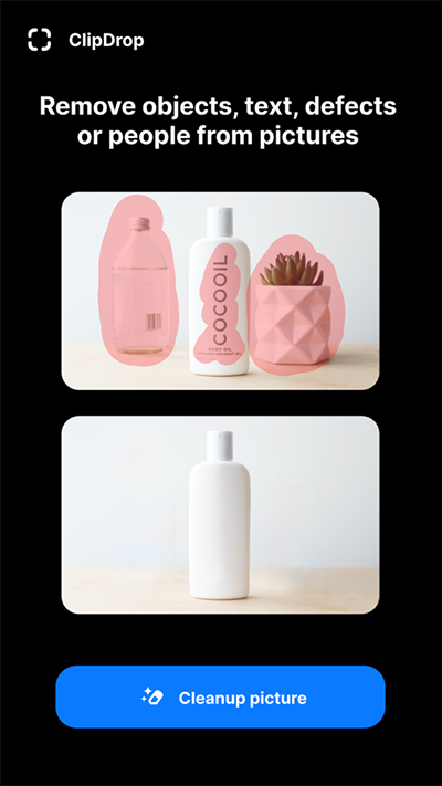 所有这些照片都严格保留在ClipDrop云图库中,绝不会与第三方共享。