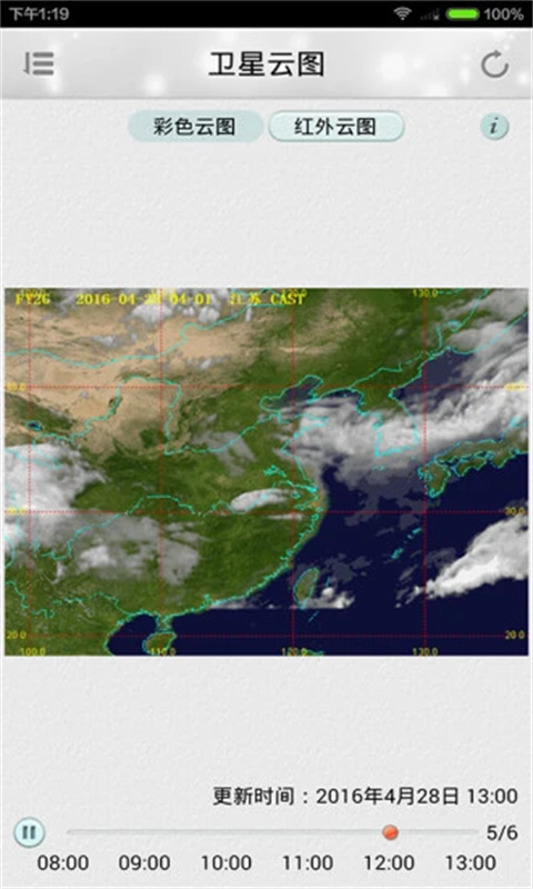1、卫星云图,提供华东区域最近6小时的云图动画展示。