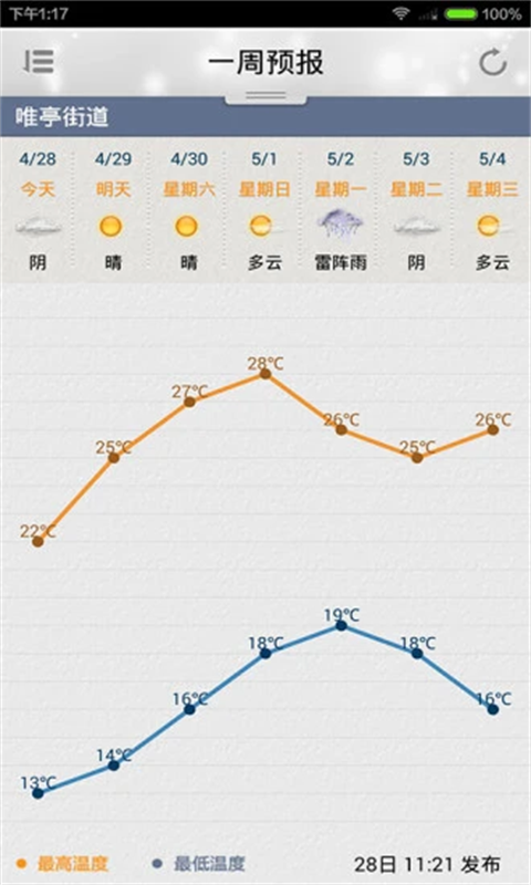 2、实时更新,每天的风向和温度变化,随时掌握。