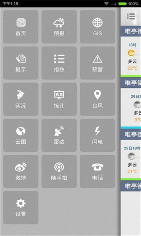 2、GIS地图,查看苏州及全国天气资讯,直观明了。