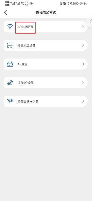 2、选择添加方式、如AP热点配置