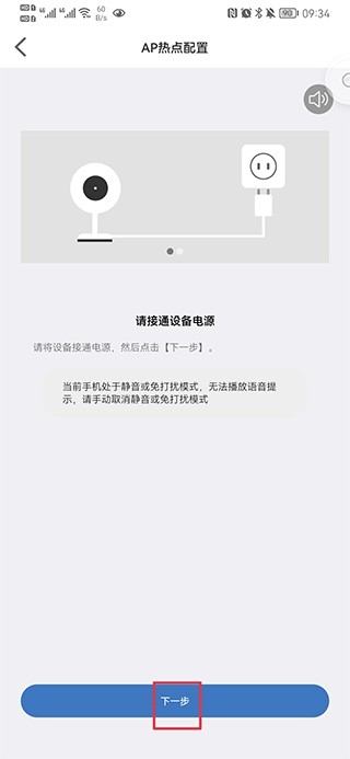 3、按照提示接通设备电源,然后点击下一步