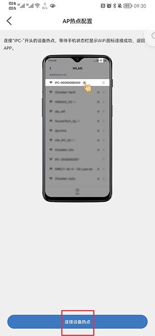 4、连接ipc-开头的WiFi后,点击连接设备热点,待设备连接完成就可以了