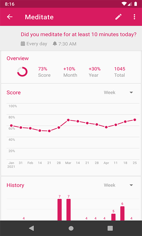 3、平台还为广大用户提供了非常优质的数据汇总服务,用户们可以在这里查看到自己的习惯养成计划的点点滴滴,了解自己的完成情况;