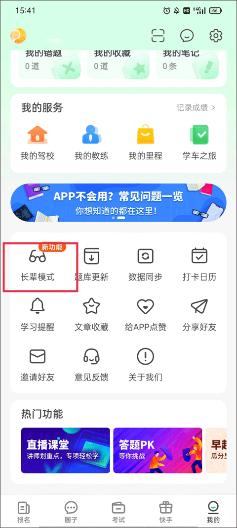 2、字体更大,刷题方便,长辈使用可以更加轻松,点击下方的“开启长辈模式”。