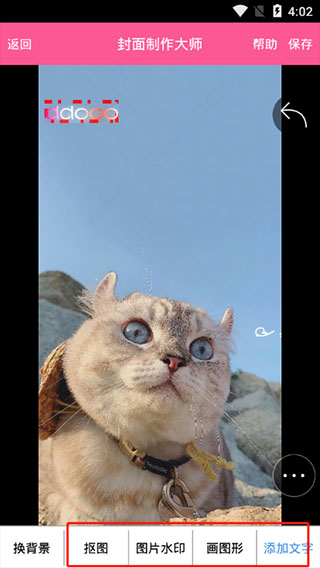 4、接着可根据自己的需求来自定义对其进行抠图、图片水印、话图形、添加文字等操作;