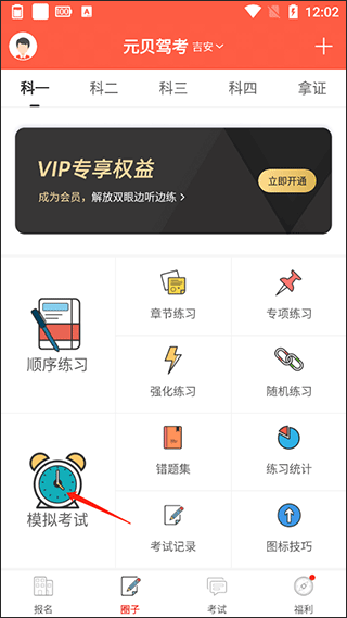 1、点击元贝驾考里面的专项练习,可以先开启答题测试。