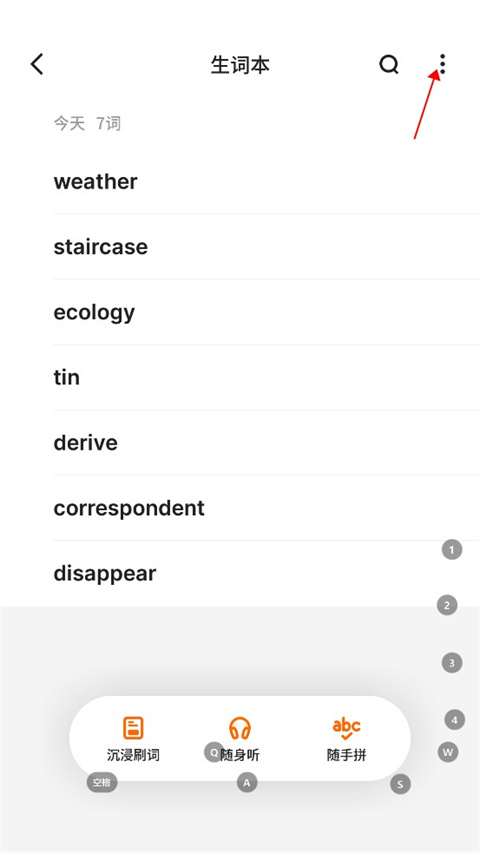 在当前页面找到并单击生词本。