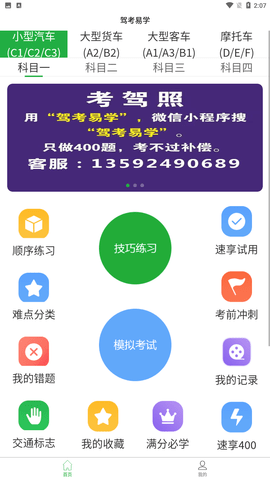 2、全真模拟:根据交管部门官方考试规则出题,考前模拟,考试顺利!