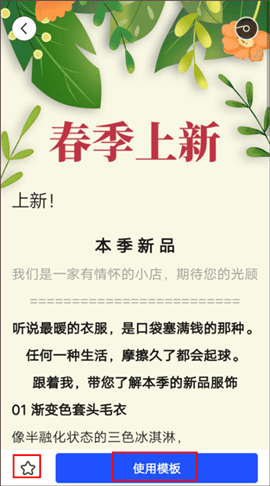 3、可以选择多个模板加入收藏,之后再进行筛选,筛选到合适的模板后,点击【使用模板】即可