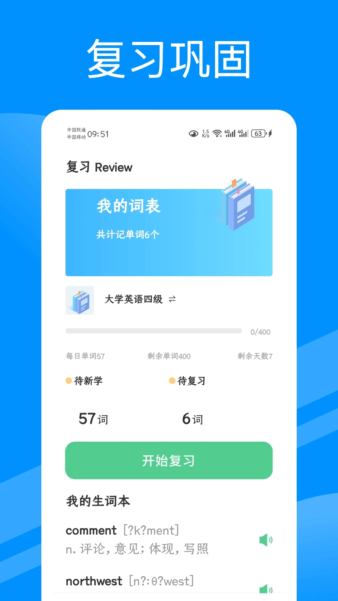 2、通过基础生词以及难度生词来进行曲线学习。