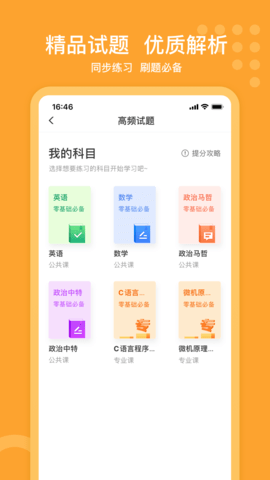 1.一款专为大学生打造的刷题软件,包含丰富多样的学科种类。