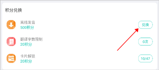 2、在离线中心可以通过签到等方式获得积分后,点击离线右侧的“兑换”即可啦。
