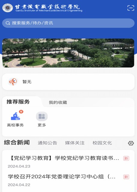 机电一点通app官方软件是一款专为甘肃几点职业技术学院设计的校园办事服务软件,这里可以帮助师生更好的在学校办理各种服务,线上缴费,可成查询,提交作业,还可以查看电子图书馆的书籍,更好的去寻找自己喜欢的书籍来看,感兴趣的可以来下载机电一点通app官方体验。