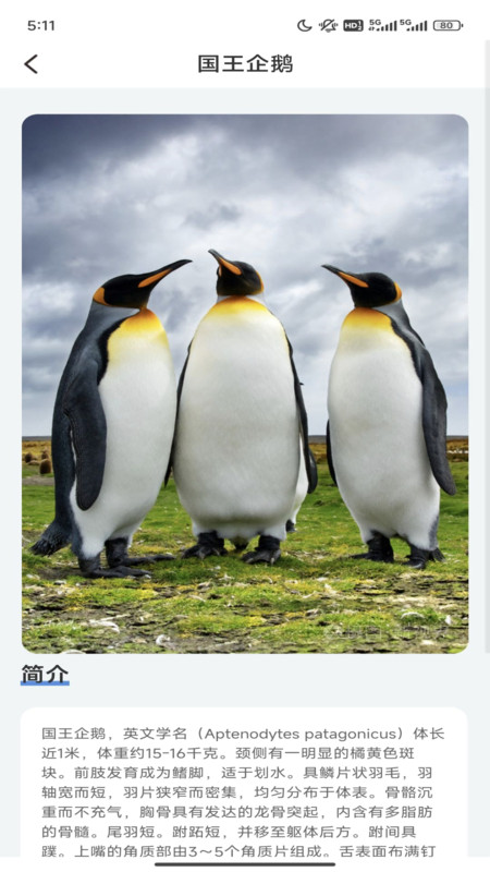 企鹅妙看是一款专注于企鹅知识普及与分享的独特手机应用软件,专为热爱自然、对企鹅生活习性充满好奇的用户精心打造。它如同一个移动的企鹅博物馆,将丰富的企鹅百科知识一网打尽,让用户在指尖轻触间即可深入探寻企鹅世界的奥秘,了解这些生活在地球两极的独特生物的生活习性和生态故事,进而增进人们对自然界的认知和尊重。